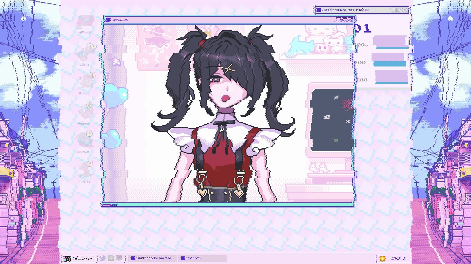 A peine, ai-je démarré le jeu qu'il sait déjà comment m'appâter, avec le démarrage de "windose 20" semblable à celui de windows 95/98. On choisit son fichier via un écran de démarrage (qui n'est pas sans rappeler celui de windows XP), et on arrive sur un bureau à l'esthétique retro. On découvre Ame, par l'intermédiaire d'une fenêtre affichant sa webcam, la jeune femme nous explique par l'intermédiaire d'une conversation "Line" que nous sommes son petit-ami et manager de surcroît, nous avons une mission : L'aider à gérer sa carrière de streameuse.